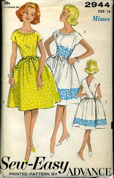 1950s Vintage Chic Back Wrap Housedress Advance 7711 Bust 36 Sewing Pattern